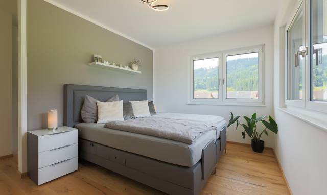 Da wir uns für die Variante „Schlüsselfertig“ entschieden haben, war unser Haus direkt nach Fertigstellung beziehbar. Vom 1. Stelltag bis zum Einzug waren es ca. 3,5 Monate.