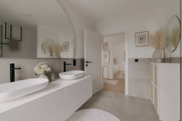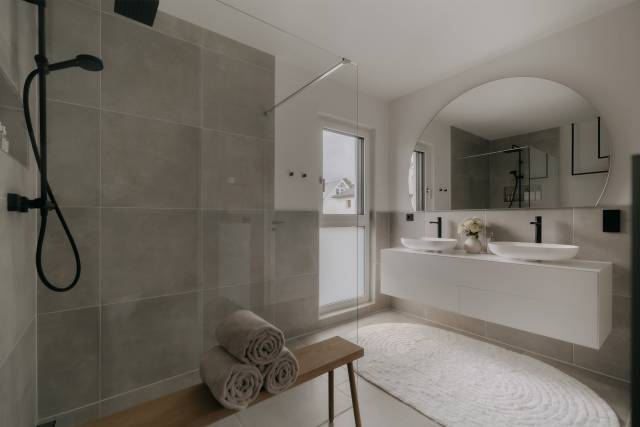 Für mich als Interior-Liebhaberin war die Bemusterung definitiv das Highlight der gesamten Planungsphase. Die passenden Bodenbeläge, Farben und Oberflächen auszuwählen und all diese Details selbst mitzugestalten, war für mich ein ganz besonderer Moment. Da konnte ich meiner Kreativität freien Lauf lassen und dem Haus meine persönliche Handschrift verleihen.