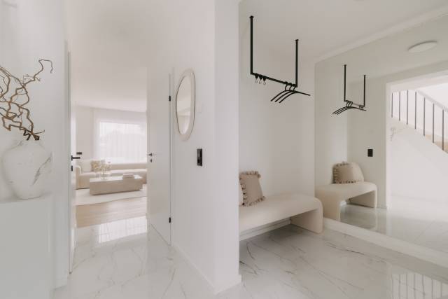 Gleichzeitig konnte ich durch gezielte Anpassungen viel herausholen: Ich habe das Haus voll unterkellern lassen und dadurch den Technikraum ins Untergeschoss verlegt. So ist im Erdgeschoss ein schöner, offener Bereich mit Garderobe entstanden, der dem Eingangsbereich gleich viel mehr Weite gibt.